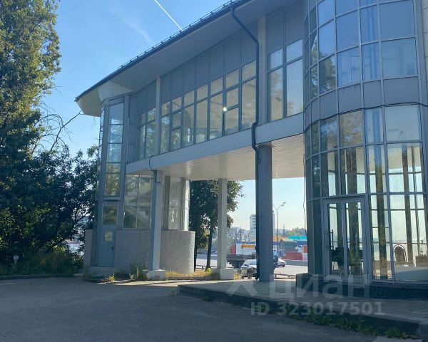 Трехэтажное здание с полностью стеклянными фасадами, отдельным въездом с МКАД, своей парковкой.