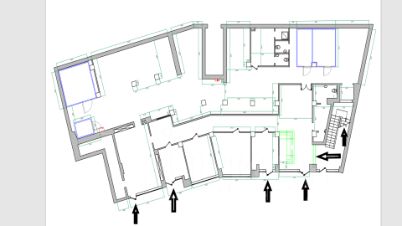 Площадь: 175 м2 на 1 этаже с Витринными окнами, есть запасной выход .