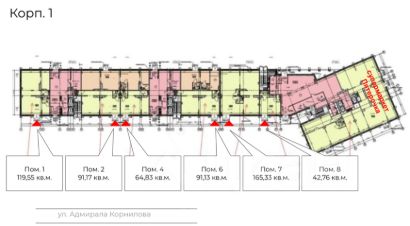 Сдается помещение площадью 118,5 кв.м. на 1 этаже жилого дома формата street retail.