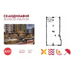 1001349 . Предлагаем помещение свободного назначения формата Street Retail, площадью 124,3 кв. м., расположенное на первом этаже жилого дома в "ЖК Эко Бунино".