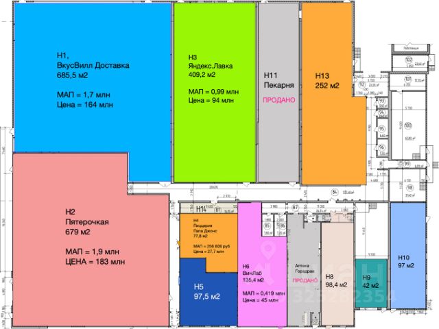 — МАП: 170 000 ₽ (16 830 ₽/м²/год, с НДС)