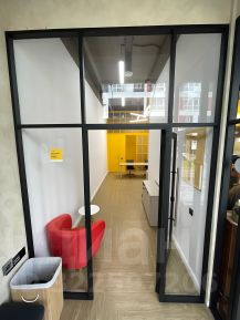 В помещении панорамное остекление: два больших окна и остекление входной двери выходят на улицу и одно окно во двор.