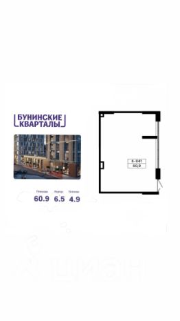 Сдам помещение площадью 60.9 кв.м. на 1-м этаже ЖК "Бунинские кварталы".