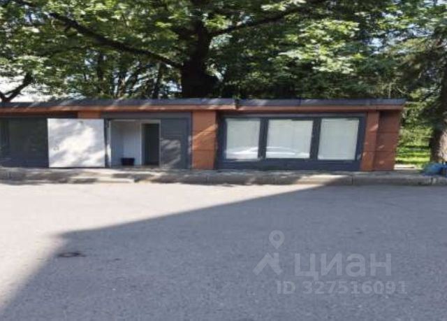 Помещение с двумя входами, один из которых рядом с остановкой общественного транспорта.