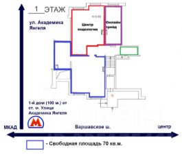Собственник. Без комиссии. Отличный блок на прощади у метро, 70 кв.м. под торговлю, услуги, представительство и т.д. 1 дом (реально пол минуты от метро) м. Улица Академика Янгеля, общий вход с 1 линии домов по Варшавскому ш., 1 этаж, место под вывеску с выделение...