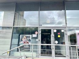 Отдельный вход с торговой галереи, вход в ТЦ соседняя дверь с фасада.