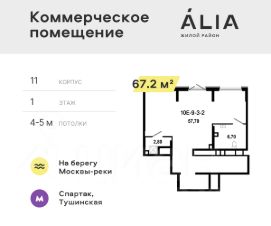 Коммерческое помещение для любого вида бизнеса в современном жилом районе АLIA. Общая площадь 67,2 м2. Высота потолков 4-5 м. Открытая планировка. Панорамные окна.