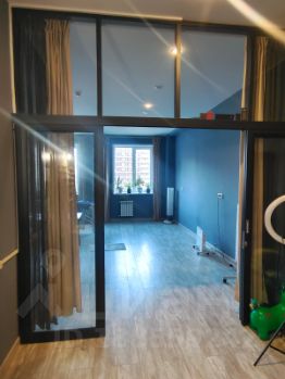 В помещении: прихожая/коридор,зона ресепшн, 2 кабинета, санузел, кухня, просторный светлый зал, высокие потолки.