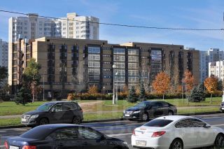 Дом стоит на перекрестке пешеходного движения, объединяя предыдущие постройки ЖК Скандинавия с новыми.