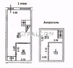 Состоит из 2х уровней: 1й этаж 77,1 кв.м.; 2й этаж (антресоль) 22,1 к.в.м.