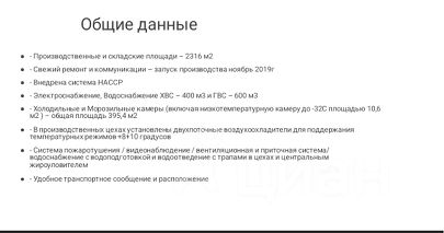 1. 2х этажный производственный блок площадью 2300 м2 (включая АБК 500 м2); 4 доковых ворот;