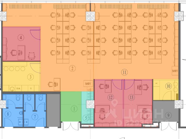 Планировка: 3 кабинета, остальное пространство Open Space.