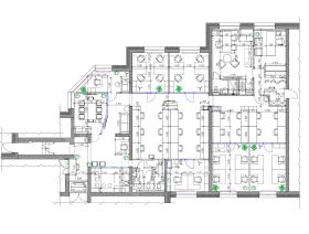 • Планировка: open space + кабинеты + переговорные + кухни + лаундж +...