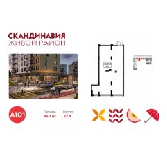 Сдается помещение площадью 86.10. на 1-м этаже ЖК "Скандинавия". Трафик 874 человек в день.