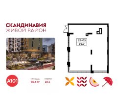 Сдается помещение площадью 66.30. на 1-м этаже ЖК "Скандинавия". Трафик 874 человек в день.