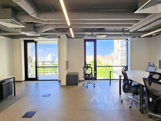 Офис с панорамным видом, смешанная планировка. Установлены современные системы приточно-вытяжной вентиляции и кондиционирования. Большие окна, высокие потолки.
