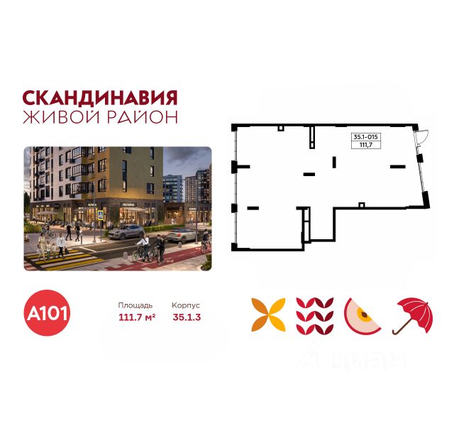 Сдается помещение площадью 111.70. на 1-м этаже ЖК "Скандинавия". Трафик 874 человек в день.