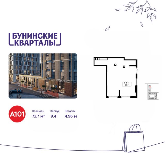 Сдается помещение площадью 73.70. на 1-м этаже ЖК "Бунинские кварталы".