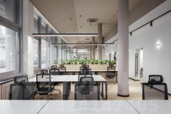 Офис полностью меблирован и сочетает кабинеты руководства, open-space зоны, перег...