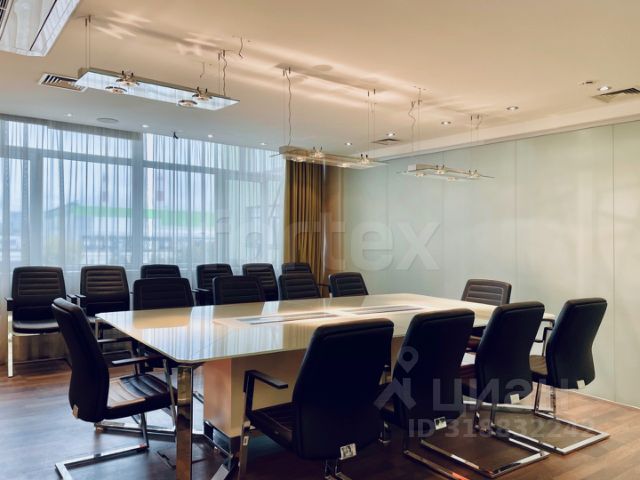 Офис с панорамным остеклением по трем сторонам, с видом на парк и проспект Генерала Дорохова.