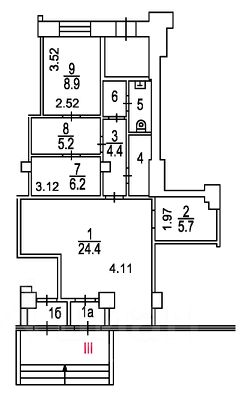 3 изолированных комнат (15,1 - 8,2 - 7,6 кв.м.)