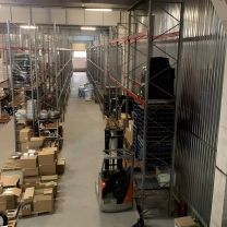 Лот 921703 Предложение от Собственника! Сдаётся складское помещение общей площадью 1500м2(склад по полу 1100м2, мезонин 200м2 и 200м2 административные помещения) в 2 км от МКАД по Киевскому шоссе, отапливаемое, высота потолка 12м, установлены стеллажи, спринклерн...
