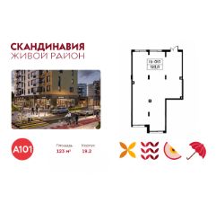 Сдается помещение площадью 123.00. на 1-м этаже ЖК "Скандинавия". Трафик 874 человек в день.