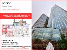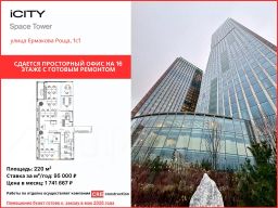Сдается офис площадью 220 м² с видом на ТТК, расположенный на 16 этаже в башне "Space Tower" деловых небоскребов класса "A" iCity.