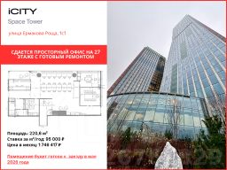 Сдается офис площадью 220,6 м² с видом на ТТК, расположенный на 27 этаже в башне "Space Tower" деловых небоскребов класса "A" iCity.