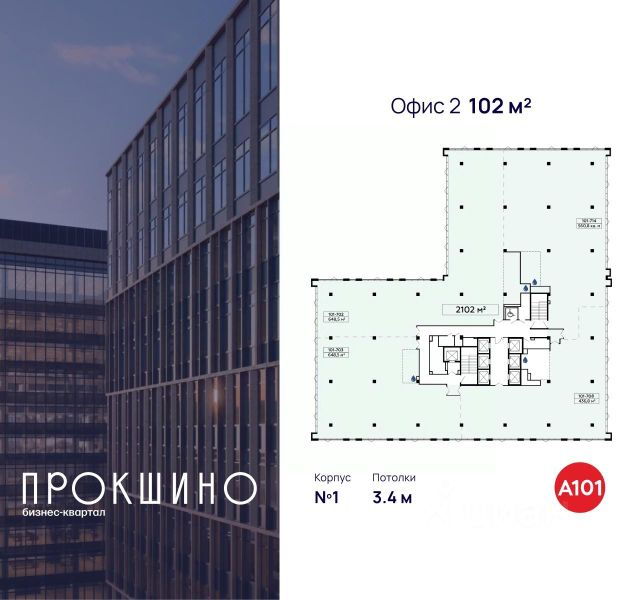 Сдаётся офисный этаж площадью 2 102 кв. м. в новом бизнес-квартале Прокшино" класса А, введённом в эксплуатацию в 2024 году.