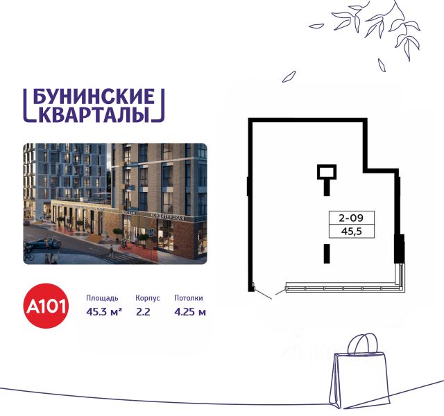 Сдается помещение площадью 45.30. на 1-м этаже ЖК "Бунинские кварталы".