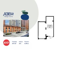 Сдается помещение площадью 47.10. на 1-м этаже ЖК "Дзен-кварталы".