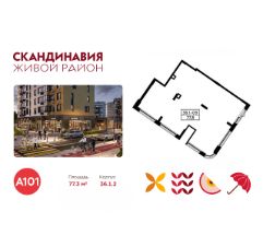 Сдается помещение площадью 77.30. на 1-м этаже ЖК "Скандинавия". Трафик 874 человек в день.