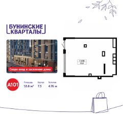 Сдается помещение площадью 53.80. на 1-м этаже ЖК "Бунинские кварталы".