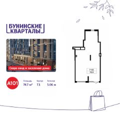 Сдается помещение площадью 74.70. на 1-м этаже ЖК "Бунинские кварталы".