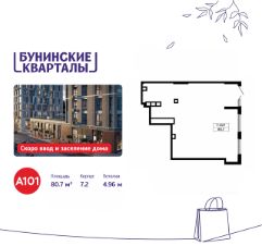 Сдается помещение площадью 80.70. на 1-м этаже ЖК "Бунинские кварталы".