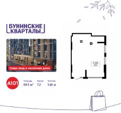 Сдается помещение площадью 69.30. на 1-м этаже ЖК "Бунинские кварталы".