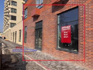 Помещение на первой линии на интенсивном автомобильном и пешеходном трафике.