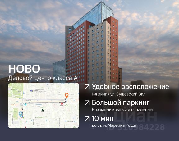 Предлагаем в аренду офис на 109 - 288 сотрудников в бизнес-центре "НОВО (Новосущевский)".