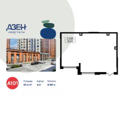 Сдается помещение площадью 61.40. на 1-м этаже ЖК "Дзен-кварталы".