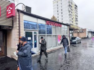 Высокий пешexодный и автомобильный тpaфик, остановка общественного транспорта напротив входа в помещение.