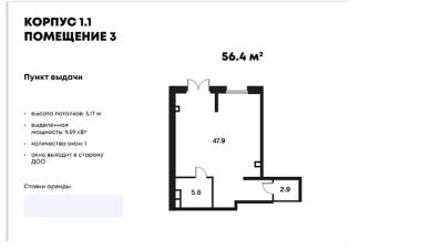 Общая площадь 70,3 м2. Высота потолков 4-5 м. Открытая планировка. Панорамные окна.