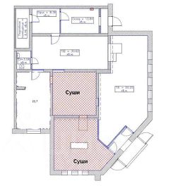 - Помещение состоит из 4 комнат, санузла, коридорных пространств. Высота потолков 2,5м.