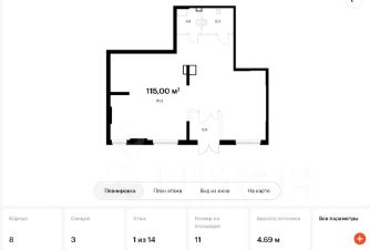 Общая площадь: 114.5 м²