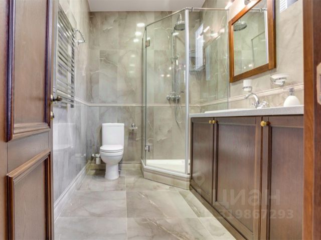 Также имеется дополнительная ванная комната с душем и туалетом. По запросу и предварительному согласованию могут быть предоставлены (детская кроватка и стульчик для кормления).