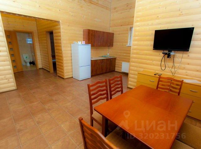 В доме просторная гостиная 40 кв.м. с панорамными окнами, обеденной зоной на 10 персон, два дивана и журнальный столик, телевизор, караоке, настольный футбол (кикер), настольные игры, светодиодная подсветка, шкаф, санузел. На кухне есть все необходимое для приготовления и приема пищи: электрическая плита, духовка 35л, СВЧ, мультиварка, кофеварка, чайник, холодильник, посуда для приготовления и сервировки, обеденный стол на 4 персоны. В ванной комнате имеется стиральная машина, утюг и гладильная доска, сушилка, ванна, туалет, раковина, фен.