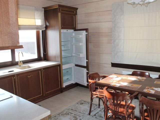 В доме просторная гостиная 60м2 с обеденным столом, диваном, диваном-кроватью, ТВ с ОККО, бильярд. Полностью оснащенная для приготовления и приема пищи кухня (индукционная плита, духовка, СВЧ, посудомоечная машина, чайник, тостер, холодильник, кофе-машина (молотый кофе).