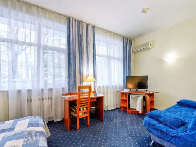 Парк-отель в Наро-Фоминском районе, рядом с историческим городком Верея. Расположен в излучине реки Протва, в рукотворном хвойно-фруктовом парке площадью 7 Га. В пешей доступности от отеля — 6 старинных действующих церквей. Отель предлагает 50 номеров различных категорий в 18 деревянных коттеджах. У большинства номеров двери выходят на улицу. В номерах: телефон, мини-бар, электрочайник, халаты, тапочки, фен, зонты, туалетные принадлежности, индивидуальное отопление. Каждая комната оснащена кондиционером и телевизором. При наличии кухни в номере имеется полное кухонное оборудование. Основное питание полный пансион (завтрак, обед и ужин по типу "шведский стол"). Работает двухэтажный ресторан с 7 залами, бильярдом, баром, верандами и видеозалом с караоке. На территории 9 оборудованных дизайнерских беседок барбекю разной вместимости. В номерах и на всей территории бесплатный Wi-Fi. В отеле разрешено пребывание с домашними животными любого размера. Имеется профессиональная тренировочная площадка для собак. К услугам гостей: крытый бассейн с летним пляжем и детской зоной, развлекательный центр, 5 видов бань и саун, духовой тир, открытые теннисный корт, мини-футбол, волейбол, баскетбол, гольф-центр, а также катание на лошадях. Для маленьких гостей работают анимация, няни, детский клуб, открытая игровая площадка. В зимнее время года добавляются освещаемый каток, лыжи, коньки, снегоходы. Просторный однокомнатный номер, оформление номера возможно в городском или деревенском стиле. Большая часть номеров имеет отдельный вход с улицы. В номере: прихожая, спальная комната с одной широкой двуспальной кроватью или с двумя раздельными полутороспальными кроватями, санузел с душевой кабиной, кондиционер, большой ЖК телевизор, мини-бар, электрочайник, фен, посуда, телефон. Для каждого гостя в номере приготовлены: махровый халат, разовые тапочки, зонт, туалетные принадлежности.