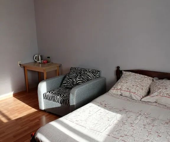 Номер-студия с двуспальной кроватью и раскладывающимся диваном. Собственная ванная комната оборудована ванной. К услугам гостей зеркало с подсветкой, фен, полотенца и косметические принадлежности. Кухня оснащена всем необходимым: микроволновой печью, электрическим чайником, мини-холодильником и плитой. Вытяжка обеспечит комфорт во время готовки. В нашей кухонной зоне вы найдете все необходимое для приготовления и сервировки блюд: посуду, столовые приборы и кухонные принадлежности, что сделает ваши кулинарные эксперименты легкими и приятными. Особенно полезным является наличие духовки, которая расширяет возможности для приготовления разнообразных блюд. Дополнительные удобства номера включают ТВ, сейф и кондиционер. В отеле имеется прачечная самообслуживания, оборудованная стиральными и сушильными машинами.