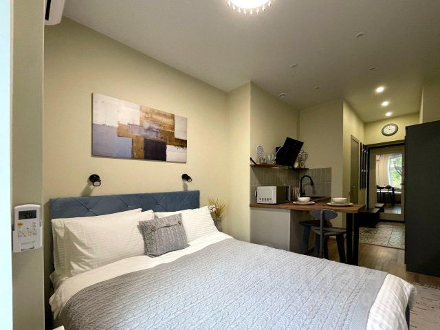 Полностью обновленный комфортабельный двухкомнатный номер состоит из гостиной, спальни, ванной комнаты и гостевого туалета. Расположение номера позволяет любоваться видами города, открывающимися в разных направлениях. Площадь номера 61 кв. м. Размеры дверных проемов: входной проем: высота 200 см, ширина 74 см. Проем в санузел: высота 200 см, ширина 58 см.Мебель: диван раскладной, кресла, кровати односпальные /одна двуспальная кровать, столик журнальный, стулья, шкаф. Оборудование: система общего кондиционирования, телевизор, утюг, холодильник. Санузел: биде с ванной, туалетные принадлежности, фен ,халат. Сервис: беспроводной интернет (Wi-Fi) бесплатно, доставка еды в номер (room- сервис), смена полотенец: ежедневно; смена постельного белья: 1 раз в 3 дня; уборка номера: ежедневно.
